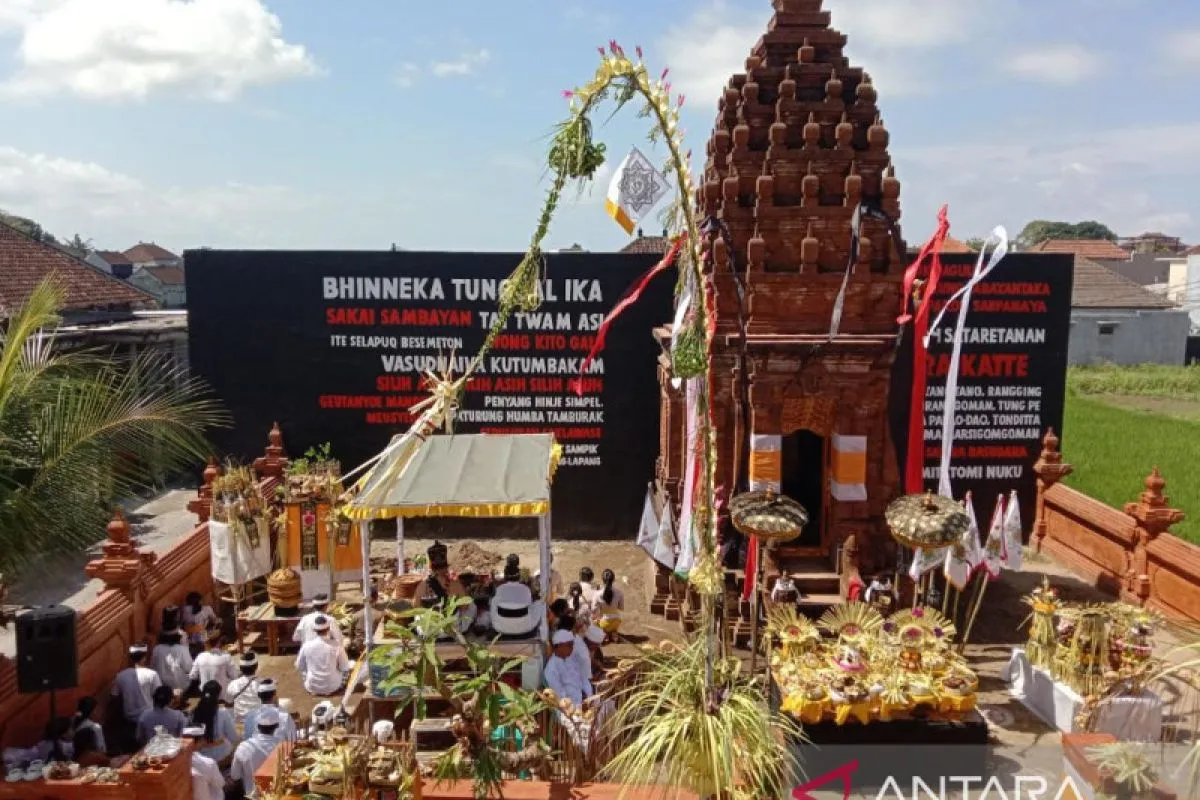 Rumah Kebangsaan dan Kebhinnekaan Pasraman Satyam Eva Jayate yang dilaksanakan upacara melaspas (penyucian) bertepatan dengan Hari Suci Saraswati dan Hari Kebangkitan Nasional di Denpasar, Sabtu (20/5/2023). ANTARA/Ni Luh Rhismawati.