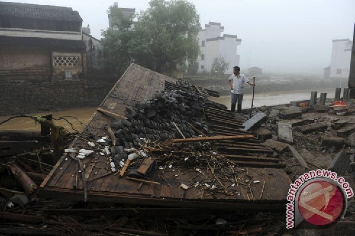 ilustrasi - Seorang warga berdiri di dekat rumah yang hancur akibat hujan deras di desa Chengkan, Huangshan, provinsi Anhui, China, Senin (1/7). Setidaknya 34 orang tewas dan 12 lainnya hilang setelah hujan badai menghantam sembilan provinsi di China sejak 29 Juni lalu, kata Menteri Urusan Sipil yang dilaporkan oleh Kantor Berita Xinhua.