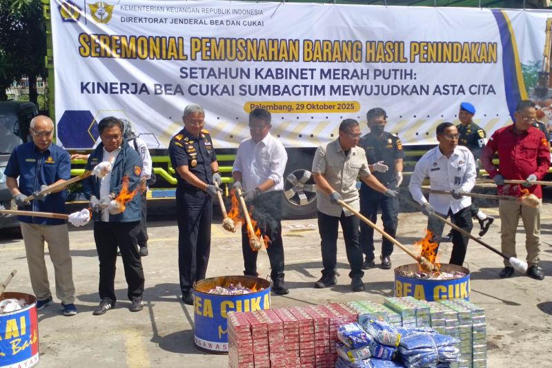 Kepala Kantor Wilayah DJBC Sumatera Bagian Timur Agus Yulianto dalam acara pemusnahan Barang bukti Barang Milik Negara (BMN) di Palembang, Rabu, mengatakan Bea Cukai Sumbagtim telah melakukan penindakan sebanyak 824 selama periode Oktober 2024-September 2025.