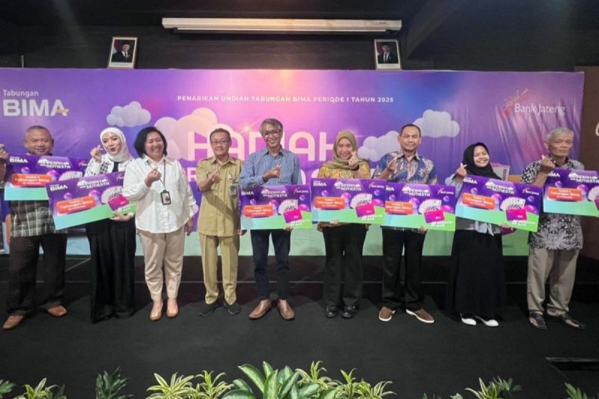 Yogyakarta (ANTARA) - Bank Jateng secara resmi menyerahkan hadiah Undian Tabungan Bima Periode I Tahun 2025 pada Selasa (27/1/2026), sebagai bentuk apresiasi bagi para nasabah yang telah mempercayakan layanan finansial mereka pada bank milik daerah tersebut.