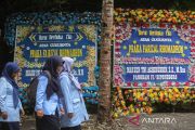 Sejumlah pentakziah mendatangi rumah duka usai gugurnya Praka Farizal Rhomadhon, prajurit TNI asal Kulon Progo saat menjalankan tugas dalam Satgas Kontingen Garuda pada misi United Nations Interim Force in Lebanon (UNIFIL). Puluhan karangan bunga duka cita dari berbagai pejabat serta instansi juga tampak berjajar memenuhi halaman rumah duka sebagai bentuk penghormatan terakhir.ANTARA/Andreas Fitri Atmoko